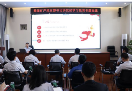 6月20日,suncitygroup太阳新城集团党委委员、蜀能矿产公司党支部书记、董事长徐开贵讲授了题为《落实全面从严治党主体责任全面加强国有企业党的纪律建设》的专题党课。6月27日,蜀能矿产党支部第三党小组开展了“庆七一、强使命、践初心”主题党日活动,重温入党誓词,并深入学习了《中国共产党章程》等相关党纪党规。