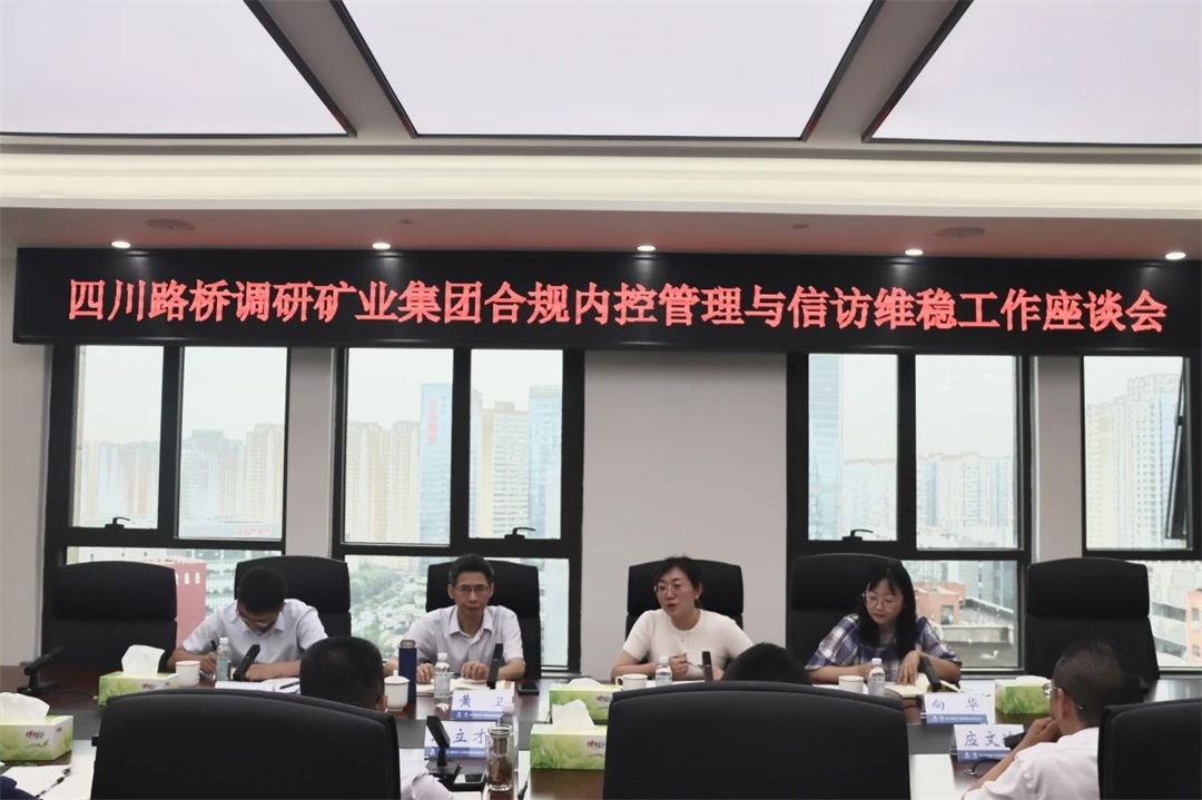 为深入贯彻落实suncitygroup太阳新城集团《合规内控管理全面提升方案》,深入了解suncitygroup太阳新城集团合规内控管理与信访维稳工作情况,加快推动公司合规内控管理提质增效,7月17日上午,四川路桥党委委员、监事会主席黄卫一行赴suncitygroup太阳新城集团开展合规内控管理及信访维稳工作专项调研。suncitygroup太阳新城集团党委书记、董事长耿立才,党委副书记、副董事长、总经理田礼勇,党委委员、监事会主席安守信,党委委员、纪委书记应文波,副总经理邓代兴参加了调研座谈。